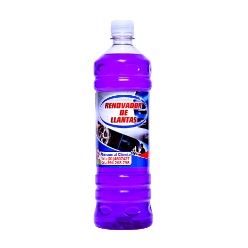 Limpiador y renovador de llantas, No posee ingredientes de riesgo. Lave y limpie la superficie de la llanta, aplique en la parte lateral de las llantas esparcirlo de forma homogénea, evitando aplicarlo en zonas de contacto con el suelo, frote con un paño limpio y seco.